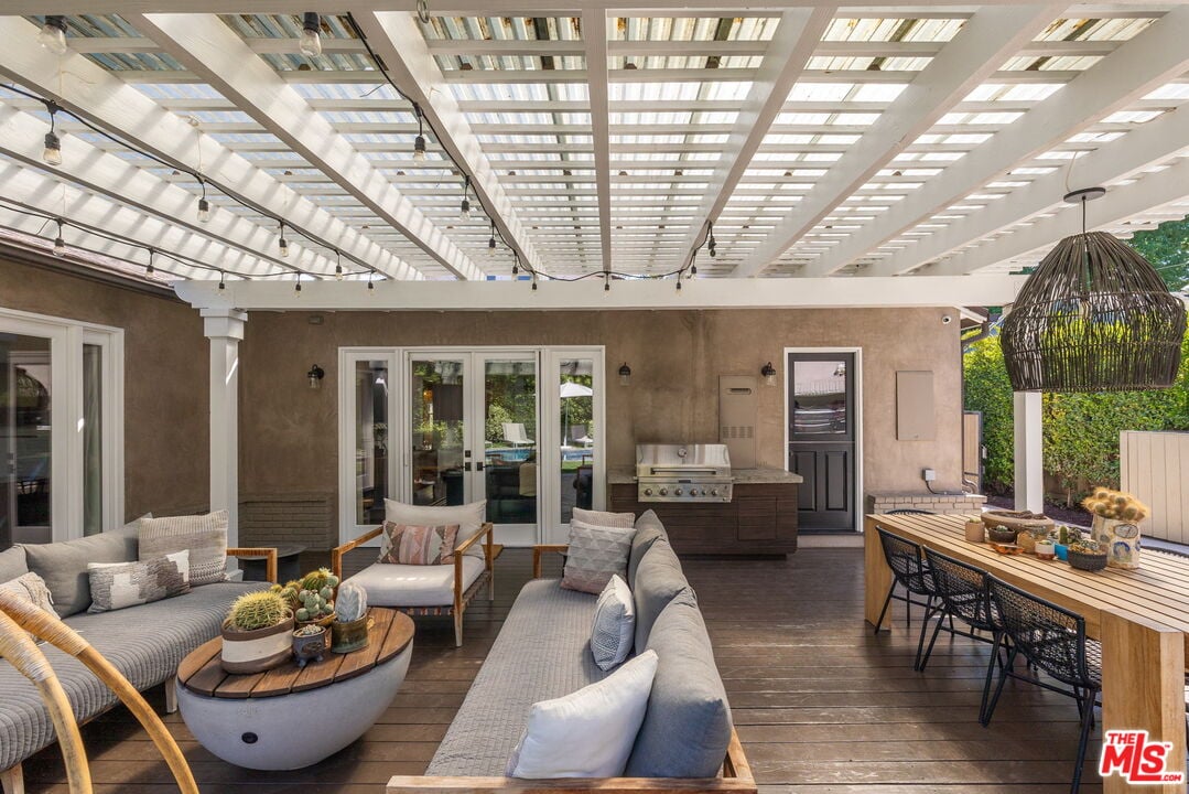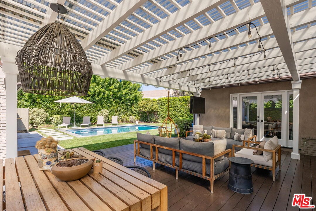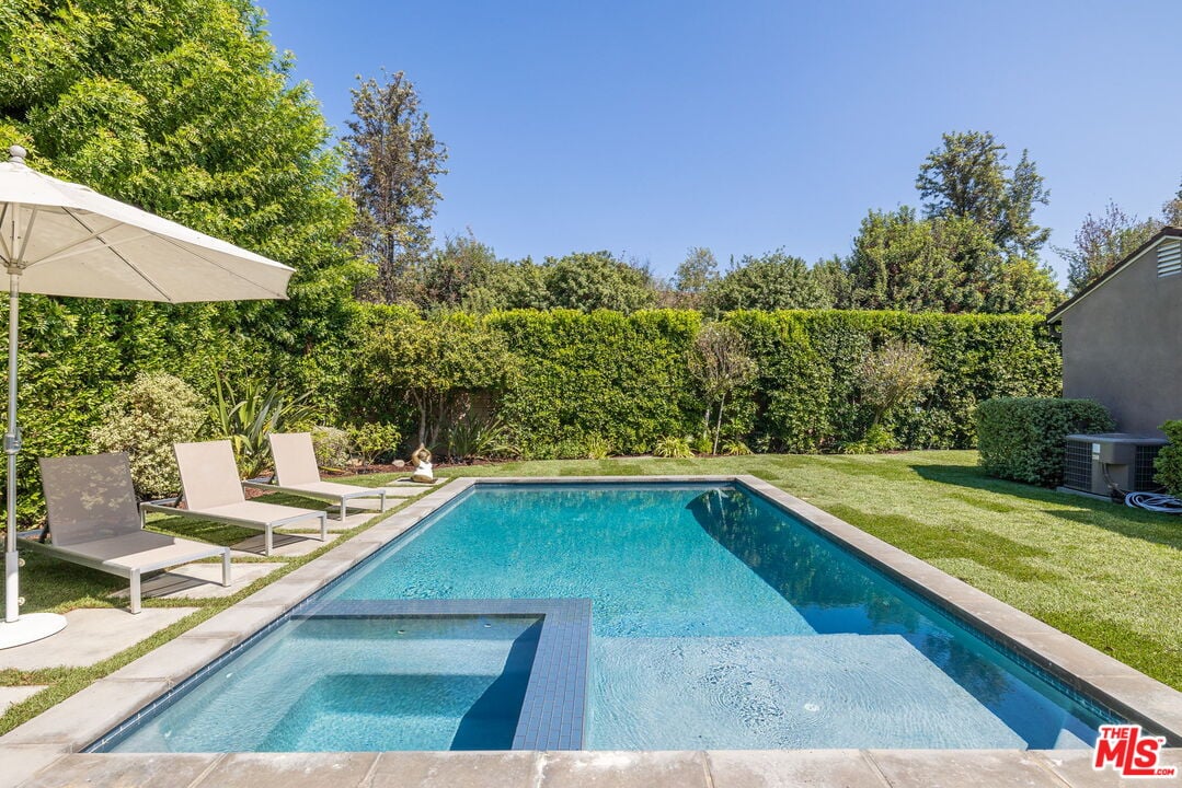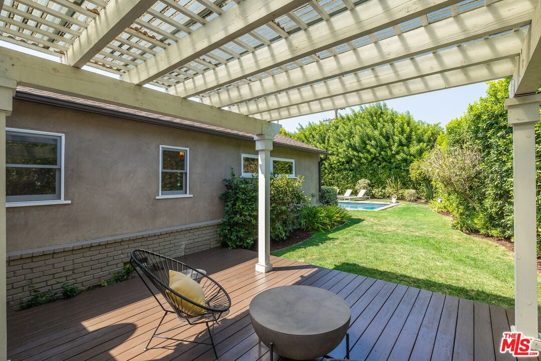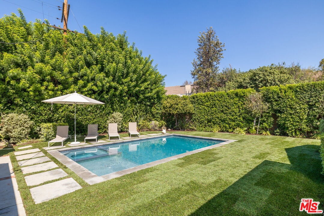 Sophisticated, traditional ranch with pool/spa in prime Sherman Oaks. Located on a 10,341 SF corner lot, this meticulously maintained, 4 bedroom, 4.5 bathroom home features a 2,237SF main house, 330SF fully air-conditioned garage, and 196SF (included in SF) air conditioned bonus space that can be used as an office, gym or art studio. With stunning curb appeal, mature trees provide ample shade as a white picket fence and brick walkway lead you to the front door. Upon entering, you are greeted by a dual fireplace, wide plank wood floors, and a bright and light interior. This ideal floor plan includes a formal living and dining area perfect for entertaining and an impressive adjacent family room adorned with vaulted ceilings, skylights, and french doors leading to a private outdoor living area and backyard with a stunning pool, built-in spa, and outdoor shower. The updated, modern kitchen features custom cabinets, Carerra marble countertops and Thermador appliances. Enjoy morning coffee or sunset cocktails on the outdoor patio of the primary bedroom and en-suite bathroom which features top quality materials and fixtures from Waterworks and Kohler. Three additional bedrooms offer flexibility for your home or office needs. Conveniently located minutes from schools, parks, and the shops and restaurants of Ventura Blvd, the Sportsman Lodge development, and nearby Studio City. With its prime location, elegant details and upgrades, this spacious haven offers exceptional luxury to be enjoyed each and every day.