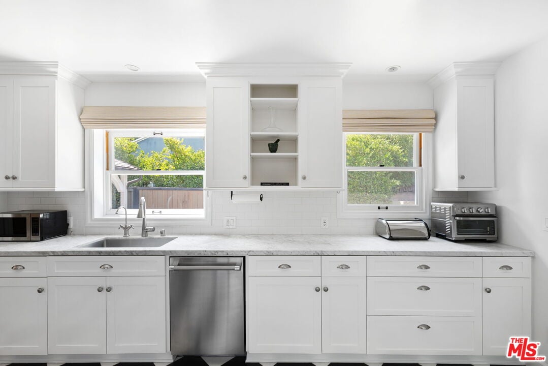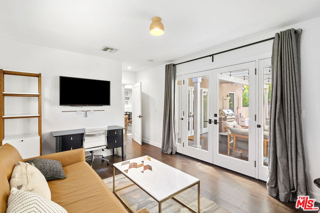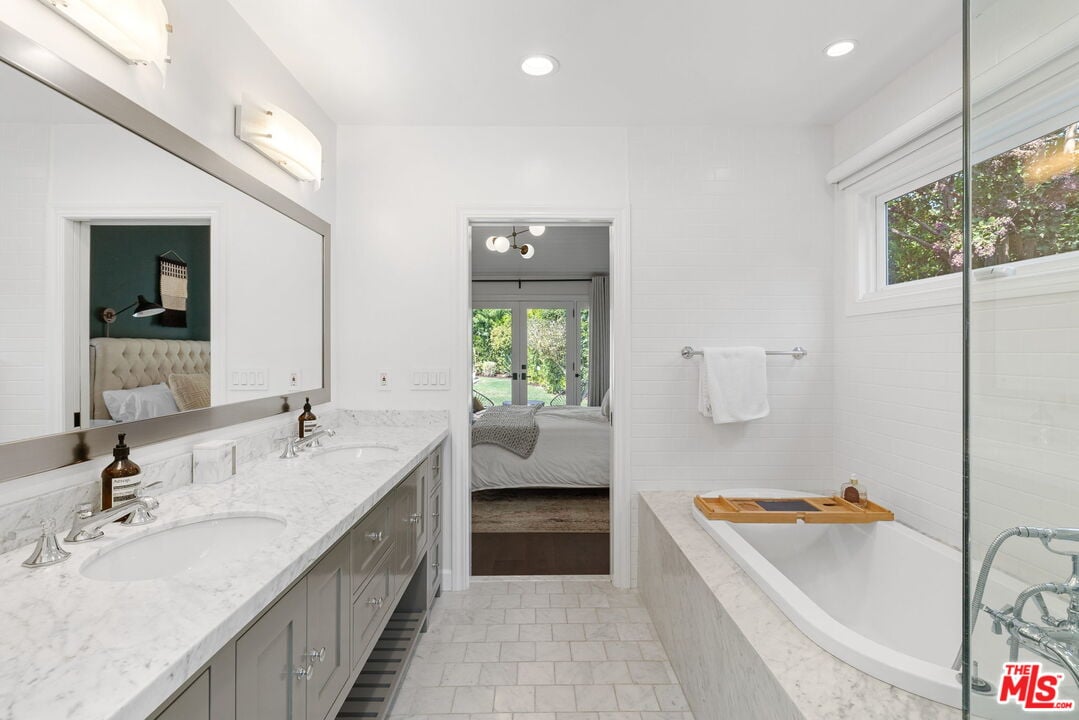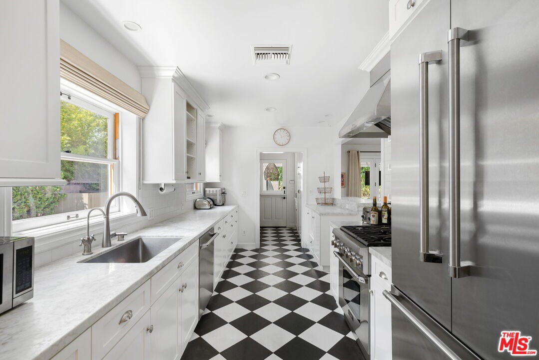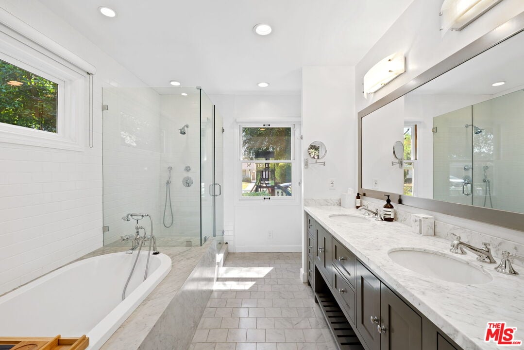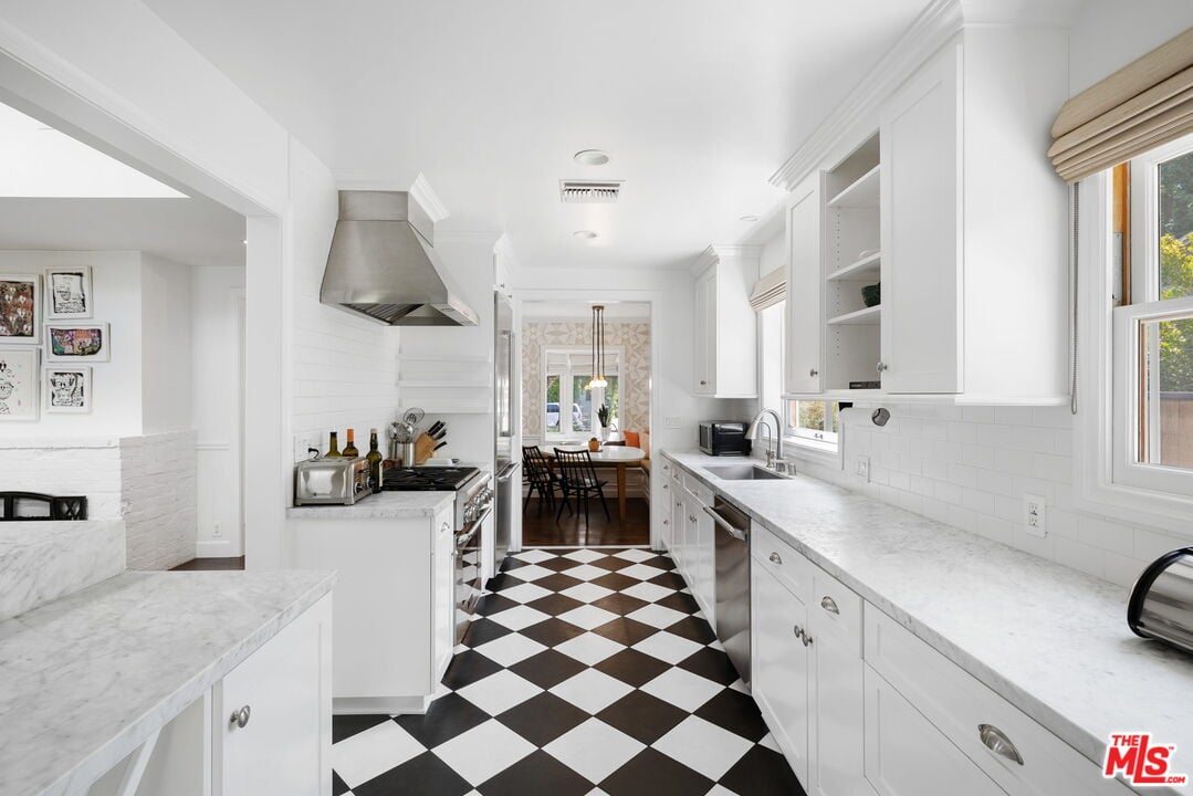 Sophisticated, traditional ranch with pool/spa in prime Sherman Oaks. Located on a 10,341 SF corner lot, this meticulously maintained, 4 bedroom, 4.5 bathroom home features a 2,237SF main house, 330SF fully air-conditioned garage, and 196SF (included in SF) air conditioned bonus space that can be used as an office, gym or art studio. With stunning curb appeal, mature trees provide ample shade as a white picket fence and brick walkway lead you to the front door. Upon entering, you are greeted by a dual fireplace, wide plank wood floors, and a bright and light interior. This ideal floor plan includes a formal living and dining area perfect for entertaining and an impressive adjacent family room adorned with vaulted ceilings, skylights, and french doors leading to a private outdoor living area and backyard with a stunning pool, built-in spa, and outdoor shower. The updated, modern kitchen features custom cabinets, Carerra marble countertops and Thermador appliances. Enjoy morning coffee or sunset cocktails on the outdoor patio of the primary bedroom and en-suite bathroom which features top quality materials and fixtures from Waterworks and Kohler. Three additional bedrooms offer flexibility for your home or office needs. Conveniently located minutes from schools, parks, and the shops and restaurants of Ventura Blvd, the Sportsman Lodge development, and nearby Studio City. With its prime location, elegant details and upgrades, this spacious haven offers exceptional luxury to be enjoyed each and every day.
